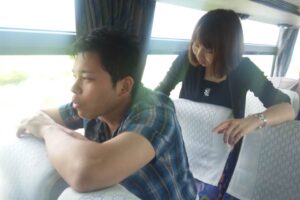 背文字ゲームをしたり、伝言ゲームをしたり移動もメチャ楽しいぃ~。