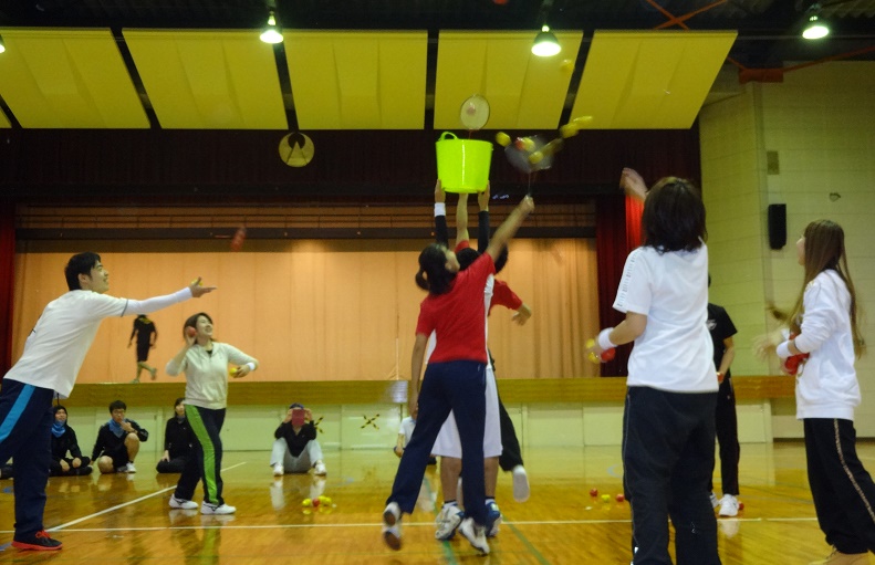 体育館で行われました( *´艸`)