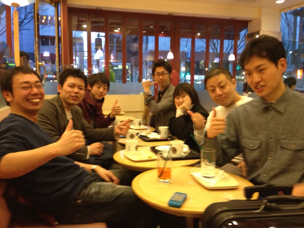 写真は、授業終了後、時間がある方々で新しく入校された方と、先輩方で顔合わせ会。