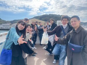 ≪みんなと終日いたいんです!日帰り旅行レク≫~福岡校編~ さあさあ、今年もやってまいりました 日帰りレク! 今回の第1の目的地は… 呼子朝市!! おいしそうな海鮮などが並んでいます。 朝からみんなおいしいものを食べて 笑顔いっぱいです♡ 朝からお腹を満たした後は 遊覧船のイカ丸に乗り込みます。 天候にも恵まれ素敵な景色を みんなで楽しみます。 海が似合う漢たちと美しい女性陣♡ 呼子を一通り楽しんだあとは カーコさんの「和限」へレッツゴー! 学長の素敵な絵がお出迎えしてくれました♪ 11月生まれの人をお祝いした次は カーコさん企画!腕相撲大会です! 男性部門、女性部門それぞれに 豪華賞品つきで白熱しました! 和限で楽しんだあとは夜ご飯でみんなで きーちおすすめのビュッフェに行きました! お腹いっぱい、楽しいいっぱいの 素敵なレクでした♪ 本当に楽しいレクでした! レク実行委員の方々ありがとうございました! 次は授業で会いましょう~ 良い写真がたくさんすぎて選びきれなかった 福岡校 はーちゃん 2023年11月30日 « 前の記事へ 次の記事へ » 最近の投稿 《大人の青春をはじめよう①②》~熊本校編~ 第一印象で得する人、損する人①②鹿児島校 《人生を豊かにする雑談力➀➁》~福岡校編~ ≪大人の青春をはじめよう➀➁≫~名古屋校編~ 《大人の青春をはじめよう①②》北九州校編 アーカイブ アーカイブ 月を選択 2026年2月 (4) 2026年1月 (14) 2025年12月 (12) 2025年11月 (21) 2025年10月 (18) 2025年9月 (22) 2025年8月 (17) 2025年7月 (19) 2025年6月 (9) 2025年5月 (18) 2025年4月 (18) 2025年3月 (11) 2025年2月 (17) 2025年1月 (17) 2024年12月 (12) 2024年11月 (18) 2024年10月 (19) 2024年9月 (18) 2024年8月 (20) 2024年7月 (19) 2024年6月 (18) 2024年5月 (23) 2024年4月 (22) 2024年3月 (14) 2024年2月 (16) 2024年1月 (17) 2023年12月 (15) 2023年11月 (16) 2023年10月 (12) 2023年9月 (16) 2023年8月 (20) 2023年7月 (20) 2023年6月 (16) 2023年5月 (11) 2023年4月 (13) 2023年3月 (14) 2023年2月 (13) 2023年1月 (18) 2022年12月 (14) 2022年11月 (19) 2022年10月 (15) 2022年9月 (17) 2022年8月 (16) 2022年7月 (16) 2022年6月 (15) 2022年5月 (16) 2022年4月 (22) 2022年3月 (18) 2022年2月 (13) 2022年1月 (16) 2021年12月 (11) 2021年11月 (23) 2021年10月 (16) 2021年9月 (16) 2021年8月 (19) 2021年7月 (10) 2021年6月 (19) 2021年5月 (14) 2021年4月 (17) 2021年3月 (20) 2021年2月 (16) 2021年1月 (14) 2020年12月 (14) 2020年11月 (17) 2020年10月 (15) 2020年9月 (13) 2020年8月 (20) 2020年7月 (12) 2020年6月 (12) 2020年5月 (15) 2020年4月 (13) 2020年3月 (14) 2020年2月 (16) 2020年1月 (13) 2019年12月 (15) 2019年11月 (16) 2019年10月 (18) 2019年9月 (18) 2019年8月 (20) 2019年7月 (19) 2019年6月 (14) 2019年5月 (17) 2019年4月 (21) 2019年3月 (16) 2019年2月 (16) 2019年1月 (14) 2018年12月 (13) 2018年11月 (14) 2018年10月 (17) 2018年9月 (14) 2018年8月 (17) 2018年7月 (17) 2018年6月 (13) 2018年5月 (17) 2018年4月 (16) 2018年3月 (11) 2018年2月 (14) 2018年1月 (14) 2017年12月 (15) 2017年11月 (16) 2017年10月 (16) 2017年9月 (14) 2017年8月 (14) 2017年7月 (16) 2017年6月 (14) 2017年5月 (13) 2017年4月 (10) 2017年3月 (11) 2017年2月 (13) 2017年1月 (11) 2016年12月 (12) 2016年11月 (14) 2016年10月 (10) 2016年9月 (12) 2016年8月 (16) 2016年7月 (9) 2016年6月 (10) 2016年5月 (14) 2016年4月 (12) 2016年3月 (12) 2016年2月 (15) 2016年1月 (12) 2015年12月 (12) 2015年11月 (13) 2015年10月 (13) 2015年9月 (12) 2015年8月 (14) 2015年7月 (12) 2015年6月 (14) 2015年5月 (12) 2015年4月 (13) 2015年3月 (13) 2015年2月 (10) 2015年1月 (10) 2014年12月 (15) 2014年11月 (10) 2014年10月 (10) 2014年9月 (13) 2014年8月 (9) 2014年7月 (9) 2014年6月 (7) 2014年5月 (11) 2014年4月 (10) 2014年3月 (9) 2014年2月 (10) 2014年1月 (11) 2013年12月 (9) 2013年11月 (9) 2013年10月 (9) 2013年9月 (9) 2013年8月 (5) 2013年7月 (6) 2013年6月 (9) 2013年5月 (7) 2013年4月 (7) 2013年3月 (8) 2013年2月 (7) 2013年1月 (4) 2012年12月 (5) 2012年11月 (5) 2012年10月 (4) 2012年9月 (3) 2012年8月 (5) 2012年7月 (8) 2012年6月 (4) 2012年5月 (5) 2012年4月 (5) 2012年3月 (4) 2012年2月 (5) 2012年1月 (5) 2011年12月 (3) 2011年11月 (2) 2011年10月 (8) 2011年9月 (5) カテゴリー 継続支援について 仙台校ブログ 佐賀校ブログ 北九州校ブログ 博多校ブログ 名古屋校ブログ 唐津校ブログ 大名校ブログ 大濠校ブログ 天神校ブログ 式典・修学旅行・イベント 愛知校ブログ 東北校ブログ 熊本校ブログ 福岡校ブログ 薬院校ブログ 鹿児島校ブログ
