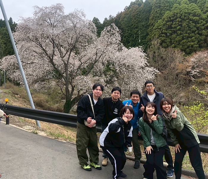 平地では桜散る中、唐津の山の満開の桜が福岡校一行をお出迎えです。