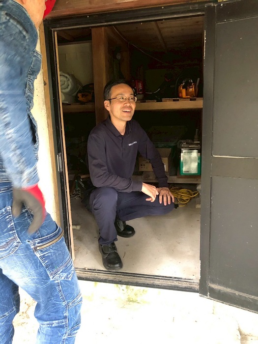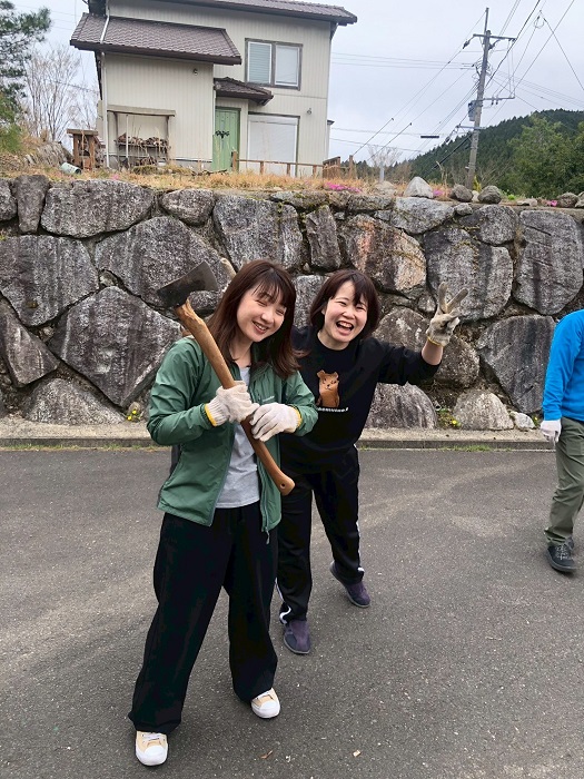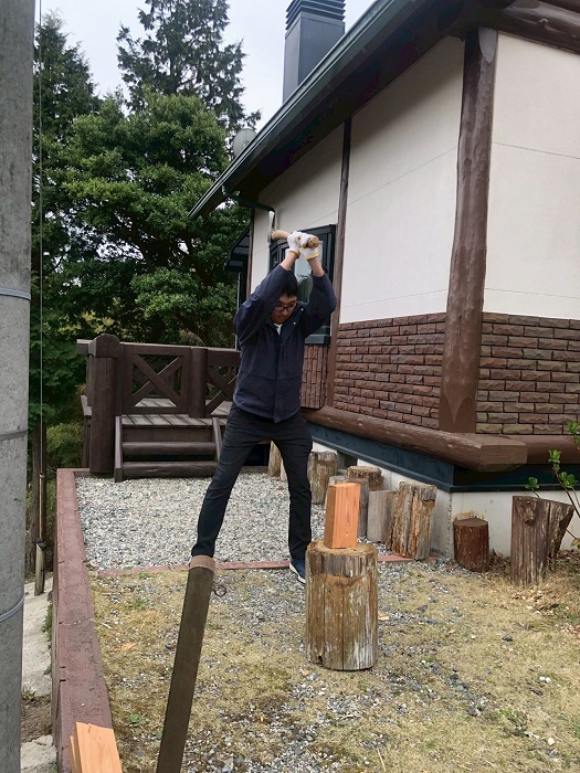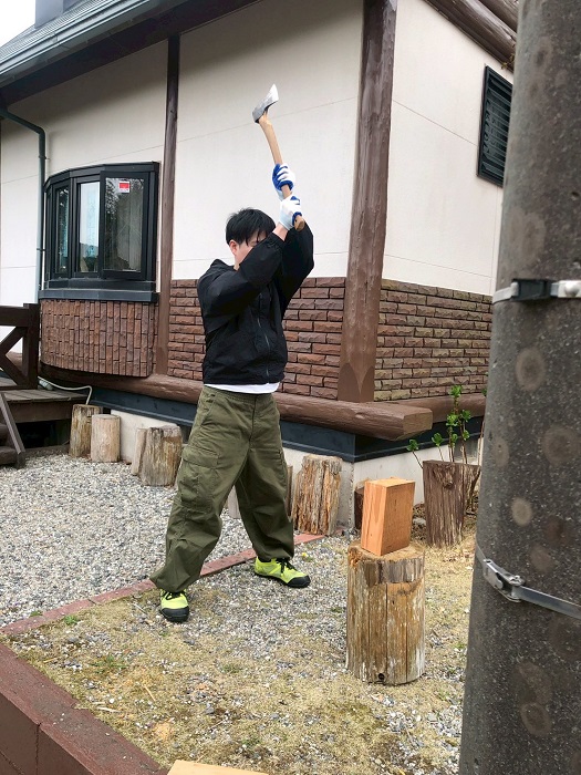 唐津校に到着し、早速薪割り開始です。