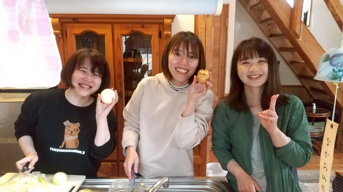 サウナの前に女性陣で料理の準備です。