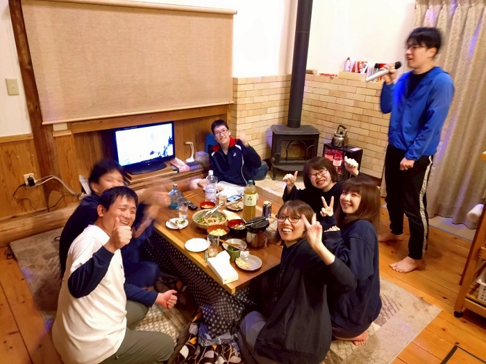 サウナの後はみんなお楽しみのカラオケと夕ご飯!