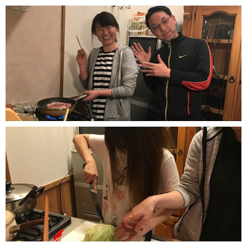 女性陣と栗山社長+丹羽講師によるお料理教室。