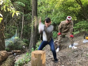 ・男性陣vs巨木(女性陣vsたけのこ)