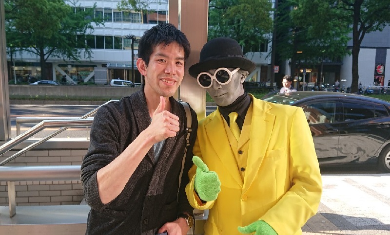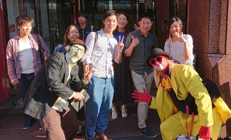授業後に会場の前でパントマイムをやる人と遭遇!