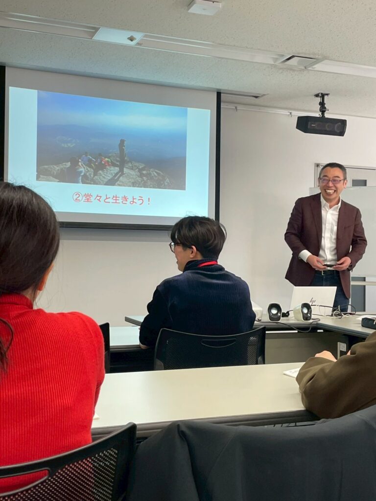 さて、本日は梶原講師による授業「堂々と生きよう!」です。冒頭、講師より「堂々と生きていますか?」との問いがありました。