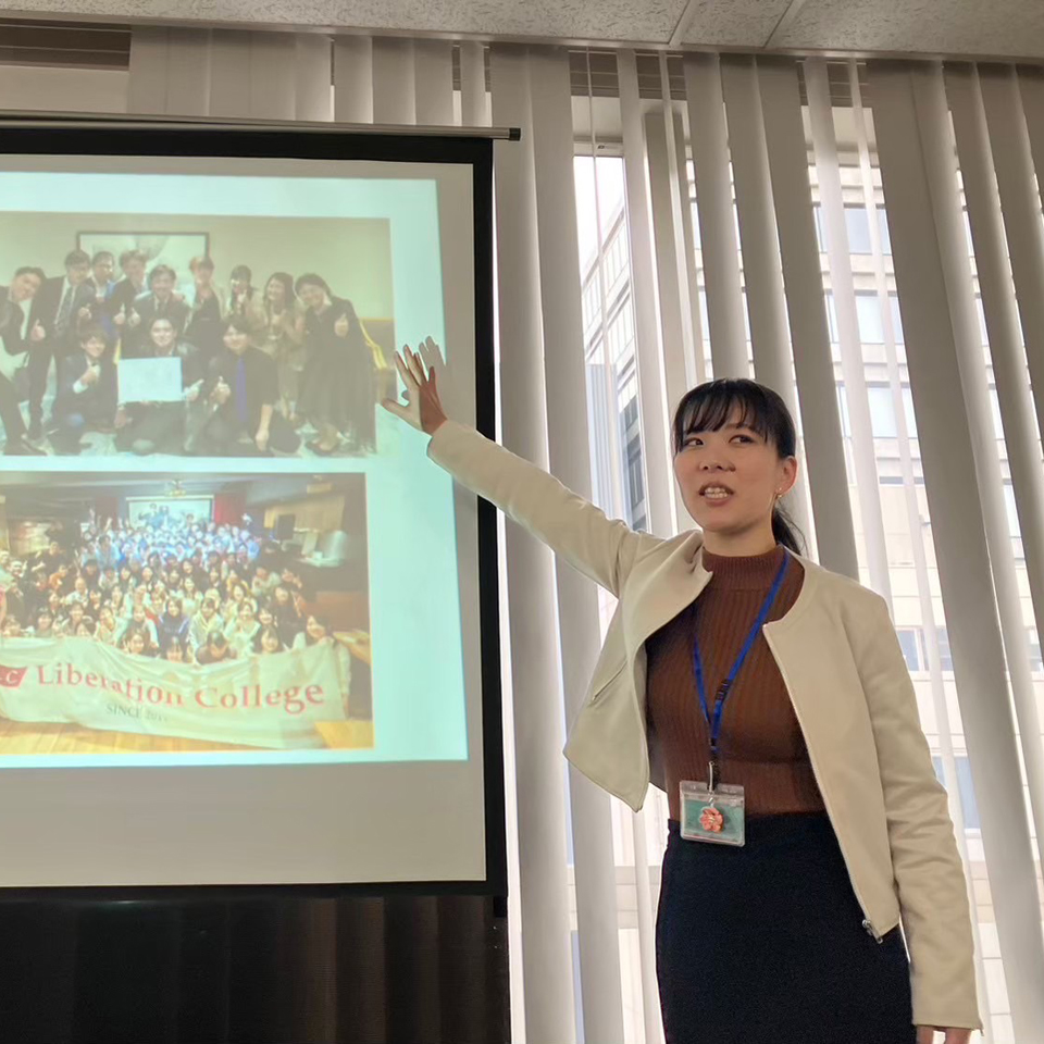 1983年生まれ、短大卒業に自分の夢であった保育士になるが人間関係で躓き離職。リバレーションカレッジ入校後は「消極的で、挑戦する前から諦める生き方を変えたい」という気持ちから授業の実践を続け、保育士に再就職。次第に「教育」に興味を持ち、現在は生徒に人気の全国講師として活躍中。